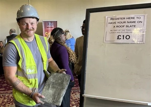 We will Paint your Name on one of the slates hat will go up on top of the Town hall during our roof renovation!